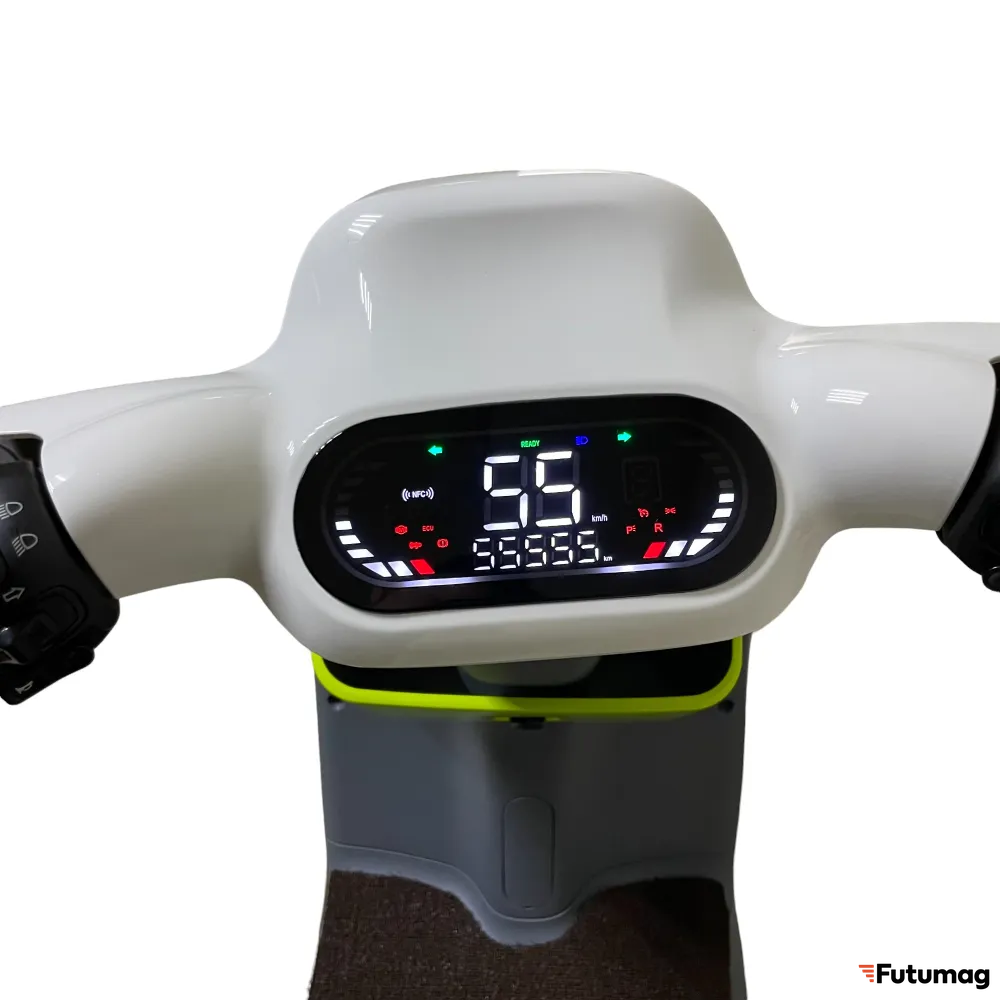 Электронный замок и кнопка запуска с NFC добавляют уровень безопасности, а ЖК-дисплей информирует вас о состоянии батареи и других параметрах. Передние и задние LED-фары, а также поворотники обеспечивают отличную видимость в темное время суток.