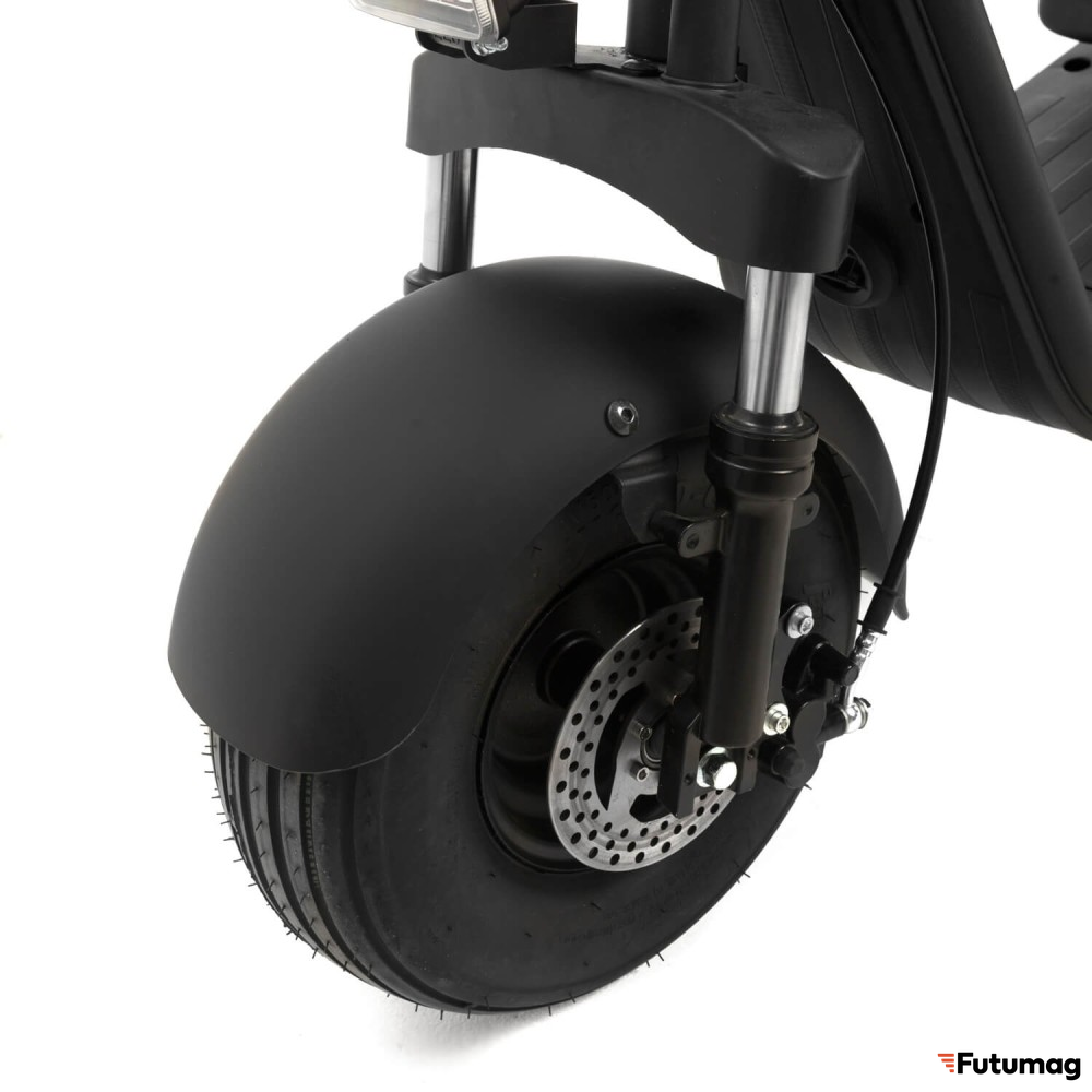 13-дюймовые колеса обеспечивают отличное сцепление и стабильность на дороге, что делает поездки более комфортными, особенно на неровных или ухабистых участках. Мощная фара обеспечивает отличную видимость в темное время суток, что значительно повышает безопасность передвижения.