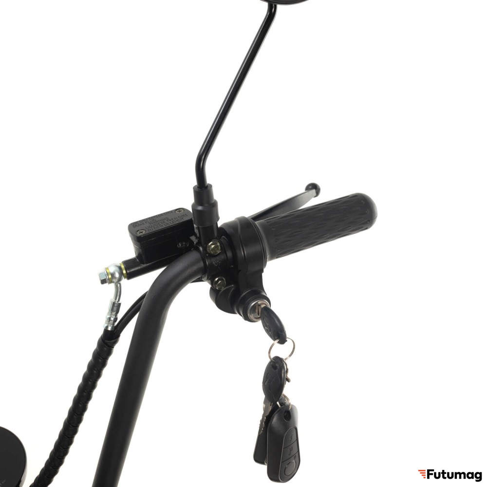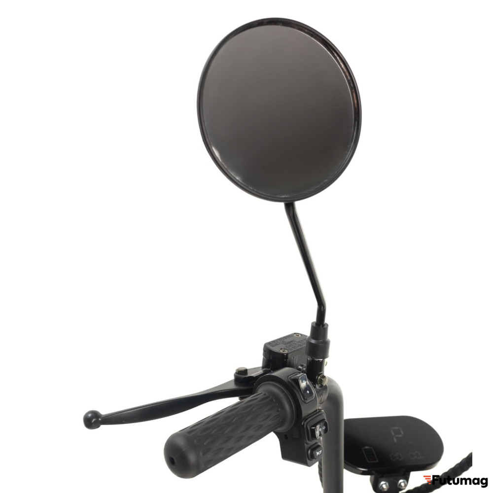 Электроскутер оснащен сиденьем и подножкой, что делает его удобным для длительных поездок и обеспечивает комфорт во время езды. Нескладная рама придает конструкции дополнительную прочность и надежность, что особенно важно для пользователей, которые планируют активное использование транспортного средства.