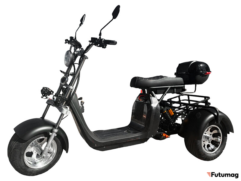 Электроскутер оснащен гидравлическими тормозами, которые обеспечивают надежное и безопасное торможение в любых условиях. Задний привод добавляет уверенности в управлении, особенно при маневрировании на поворотах. Трехколесная конструкция обеспечивает отличную устойчивость, что особенно важно для новичков и тех, кто предпочитает более стабильные транспортные средства.