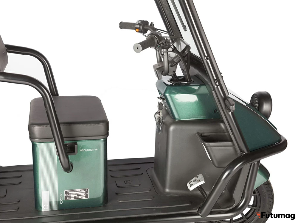 Эти параметры делают Wanshida NIPLA 500 достаточно компактным для городских условий, при этом обеспечивая комфортное пространство для двух пассажиров. Кабина и крыша добавляют удобства во время поездок в любую погоду.