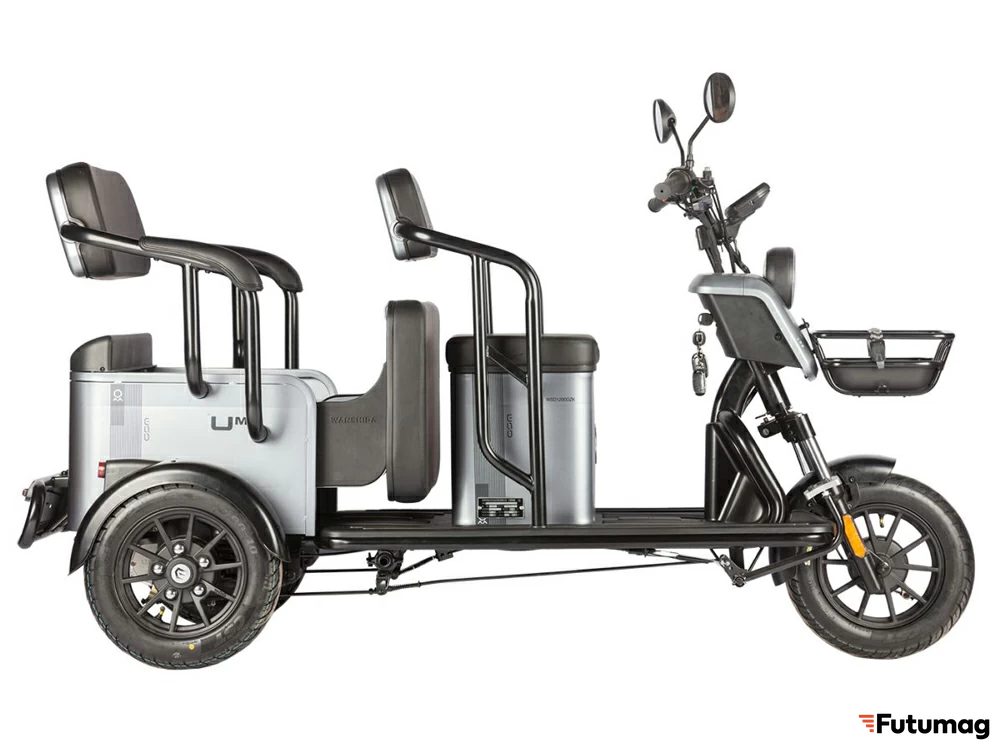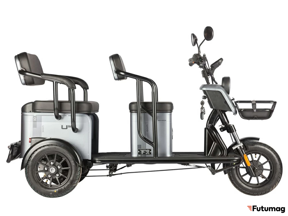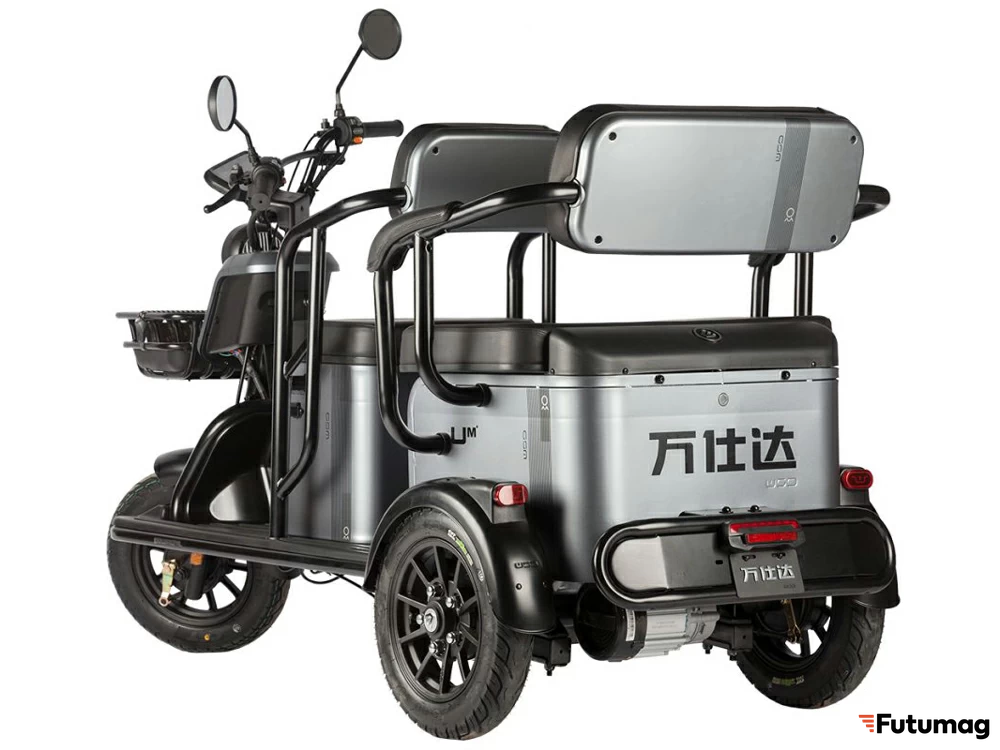 Wanshida UM+ предлагает множество удобных функций, включая багажник сзади и под сиденьем для перевозки личных вещей. В комплект входят зарядное устройство для аккумулятора и инструкция по эксплуатации, что позволяет быстро освоить управление трициклом.