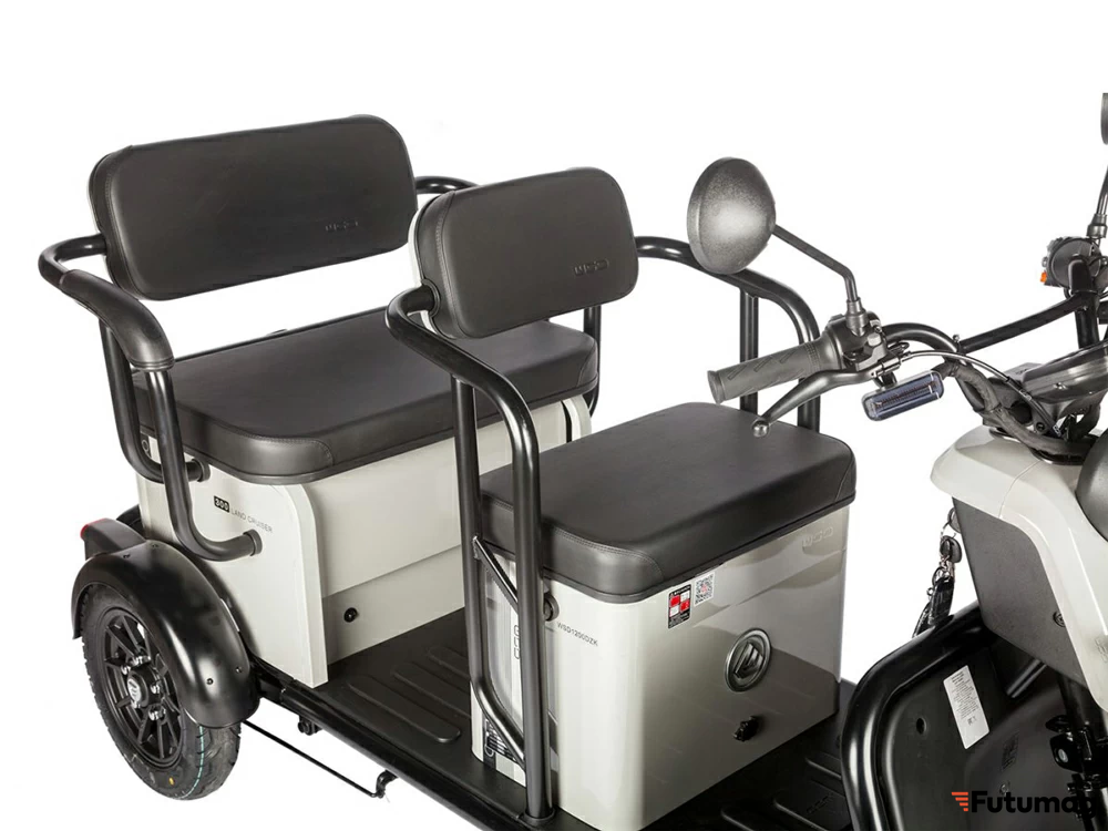С максимальной нагрузкой до 200 кг, этот трицикл подходит как для перевозки пассажиров, так и для транспортировки различных грузов, что делает его универсальным выбором.