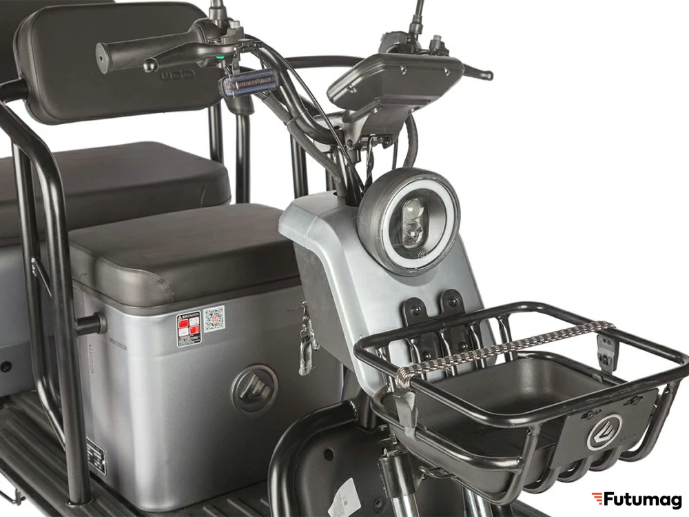 Эти параметры делают Wanshida UM+ достаточно компактным для городских условий, обеспечивая комфортное пространство для двух пассажиров. Корзина спереди добавляет удобства для транспортировки мелких вещей.