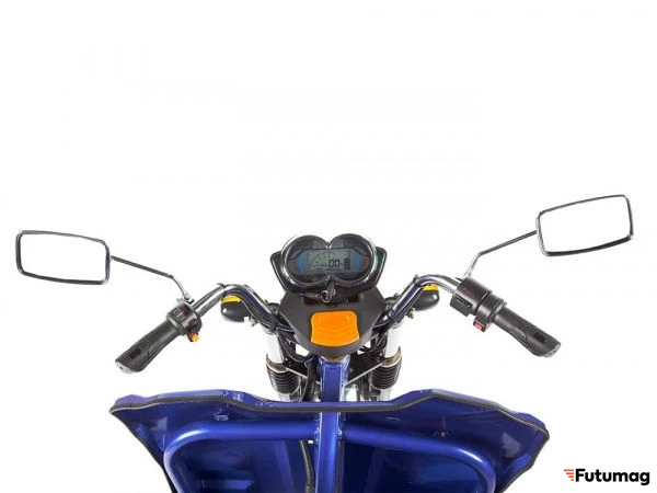 Эта модель также оснащена всеми необходимыми элементами для безопасного движения: звуковым сигналом, зеркалами заднего вида и поворотниками. Эти функции делают управление трициклом простым и безопасным, особенно для новичков.