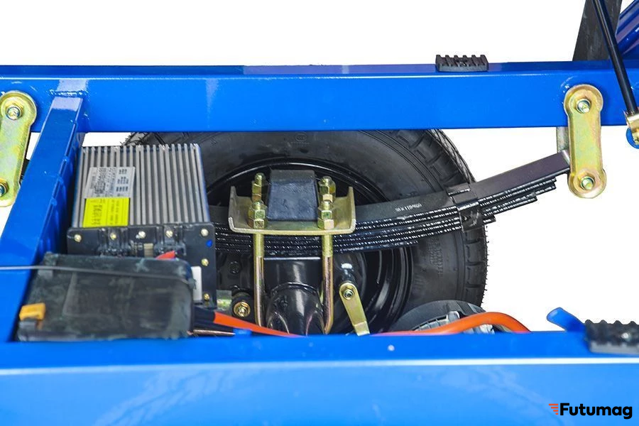 Рама из высокоуглеродистой стали обеспечивает прочность и долговечность транспортного средства, что делает его надежным выбором для различных задач. Этот электротрицикл идеально подходит как для бизнеса, так и для личного использования, обеспечивая надежность и эффективность в любой ситуации.