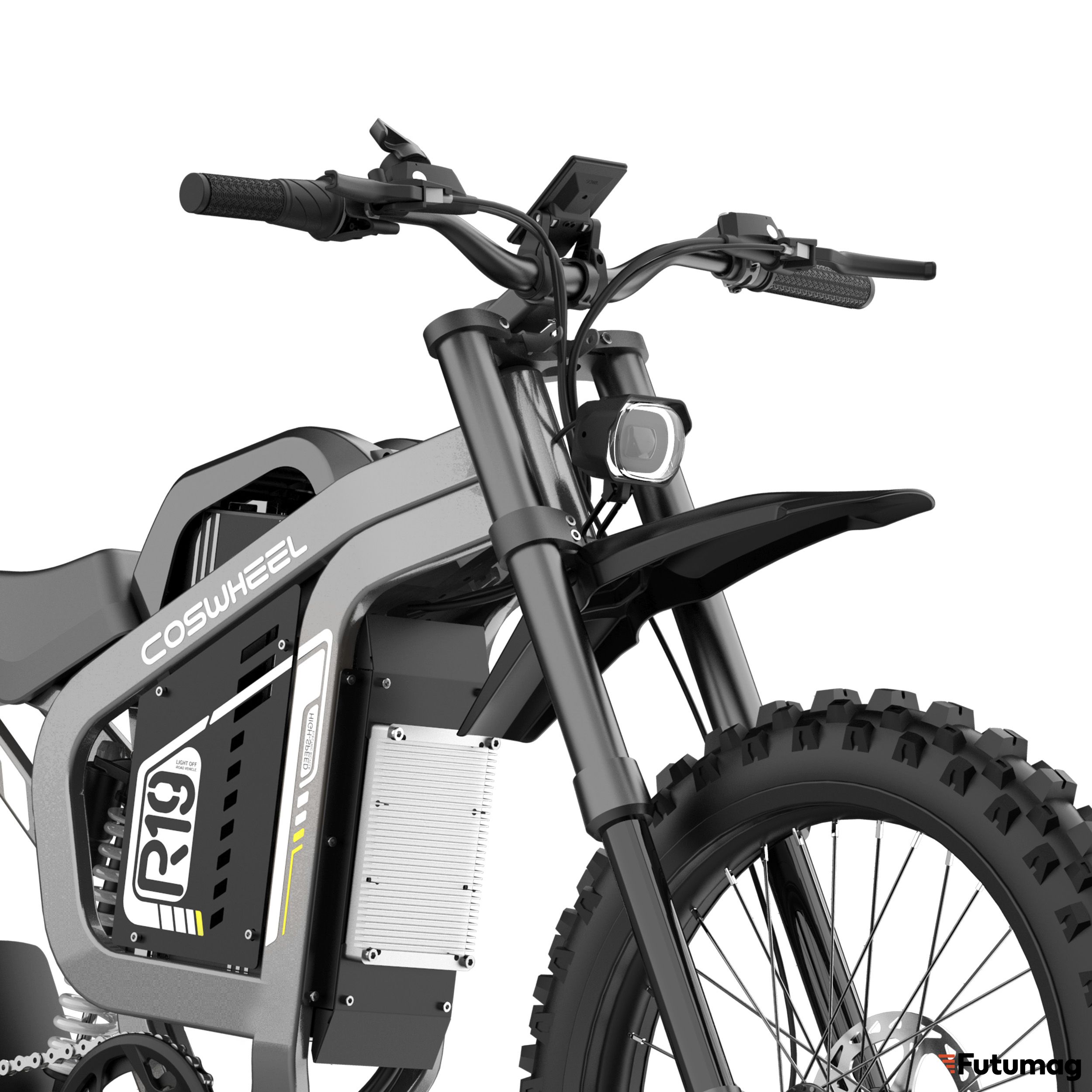COSWHEEL R19 имеет прочную раму, выполненную из алюминия, что обеспечивает легкость и долговечность конструкции. Колеса диаметром 19 дюймов обеспечивают отличную маневренность и проходимость, что делает мотоцикл идеальным выбором для любителей бездорожья.