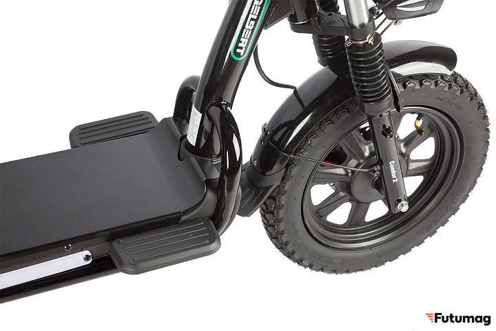 Gelbert Condor 2 оснащен энергичным электромотором мощностью 240 Вт и напряжением 60 В, что обеспечивает уверенный разгон и плавную езду. Диаметр колес составляет 16 дюймов с шириной 3 дюйма, что гарантирует отличное сцепление и комфорт даже на неровных дорогах.