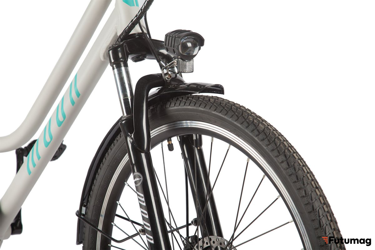 Велосипед предлагает 7 скоростей, что позволяет легко адаптироваться к различным условиям и рельефу. Он не имеет корзины, что делает его более легким и маневренным, особенно в городских условиях.