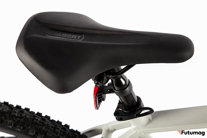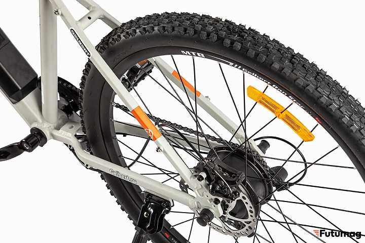 Электровелосипед оснащен задним приводом и редукторным мотором, что обеспечивает мощный и плавный разгон. Пружинно-эластомерная вилка гарантирует плавное поглощение неровностей, что особенно важно для горных маршрутов.