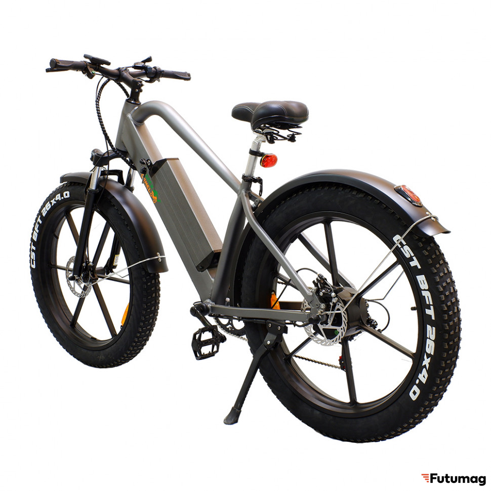 Электровелосипед имеет тип передачи мотор-колесо, что обеспечивает отличную маневренность и стабильность. Колесные диски R16 и шины размером 16*3.0 обеспечивают хорошее сцепление с дорогой, что особенно важно при движении по городским улицам или легкому бездорожью.