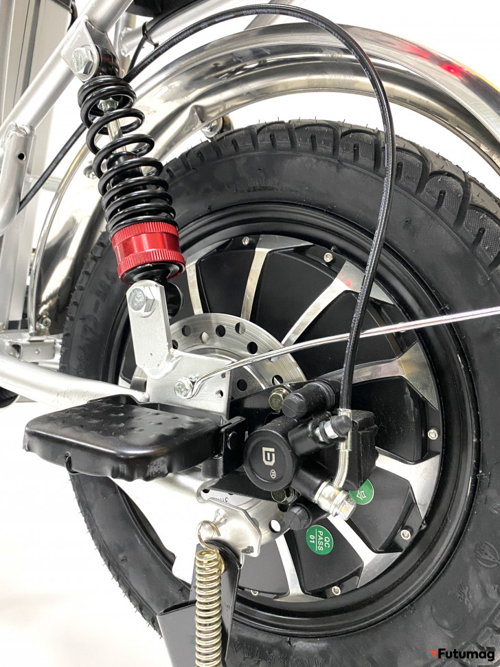 Безопасность — это важный аспект, который учитывается в конструкции этого электровелосипеда. Гидравлические дисковые тормоза как спереди, так и сзади обеспечивают надежное и быстрое торможение, что особенно важно при высокой скорости. Дорожный просвет в 26 см позволяет легко преодолевать препятствия, а высота сиденья в 90 см обеспечивает комфортную посадку для большинства пользователей.