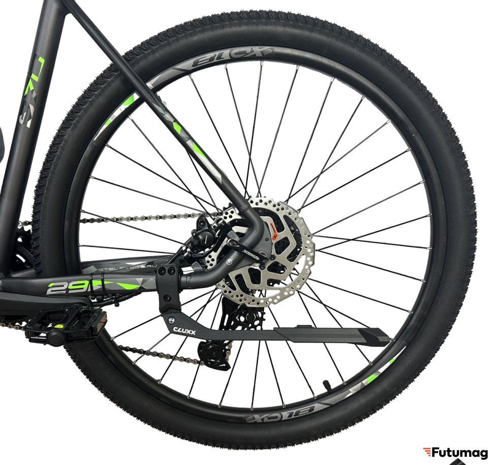 С колесами размером 29 x 2.2, этот электровелосипед обеспечивает отличное сцепление и устойчивость на различных типах покрытий, позволяя уверенно справляться с неровностями дороги.
