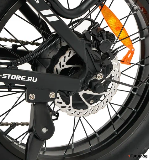 Диаметр колес составляет 20 дюймов, что обеспечивает отличную маневренность и устойчивость на дороге. Спицы колес добавляют прочности и надежности, что особенно важно для активного использования электровелосипеда.