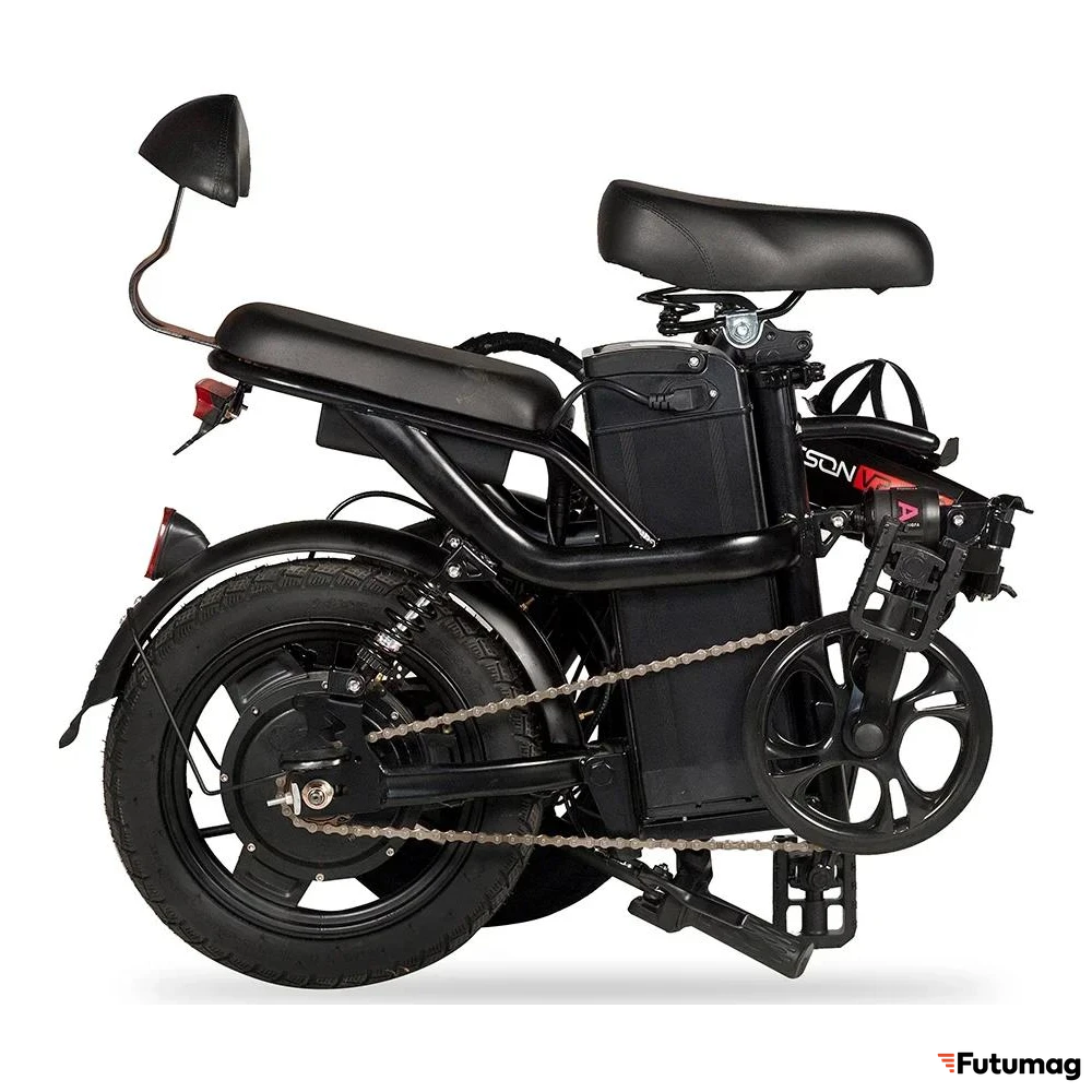 Электровелосипед Jetson V2 PRO весит всего 28 кг, что делает его легким и маневренным. Максимальная нагрузка до 120 кг позволяет использовать его как для личных нужд, так и для перевозки небольших грузов. Компактные размеры и 14-дюймовые колеса обеспечивают отличную управляемость и комфорт во время поездок.