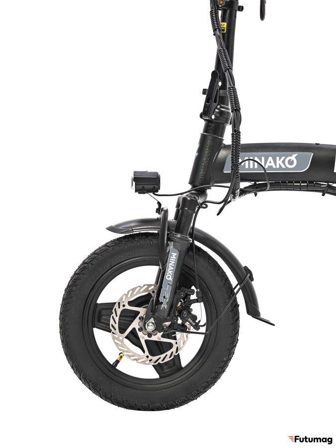 Электровелосипед Minako M1 Pro оснащен дисковыми механическими тормозами, которые обеспечивают надежное и эффективное торможение в любых условиях. Задний привод и шины размером 14 x 2.125 обеспечивают отличное сцепление с дорогой, что делает поездки более безопасными и комфортными. Дополнительные функции, такие как сигнализация и поворотники, повышают уровень безопасности при движении по городу.