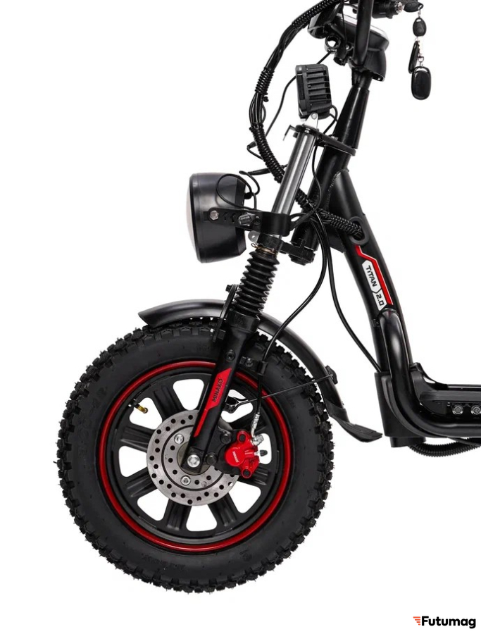 Гидравлические тормоза обеспечивают надежное и безопасное торможение, что особенно важно при движении по сложным маршрутам. Вилка с пыльниками защищает от загрязнений, а ручка газа с замком зажигания добавляет удобства и безопасности при эксплуатации.
