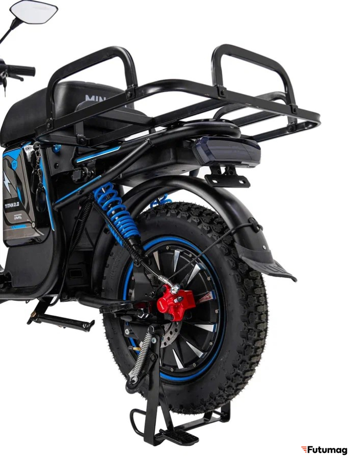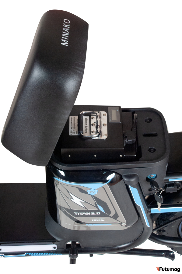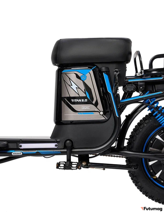 Minako Titan 2.0 оснащен батареей 60V 30Ah LifePo4 (железофосфат), что гарантирует долгий срок службы и высокую надежность. Зарядное устройство с мощностью 5A позволяет быстро заряжать аккумулятор, а полная зарядка занимает всего 6 часов. Максимальная нагрузка в 150 кг делает этот электровелосипед подходящим для различных пользователей и их потребностей.