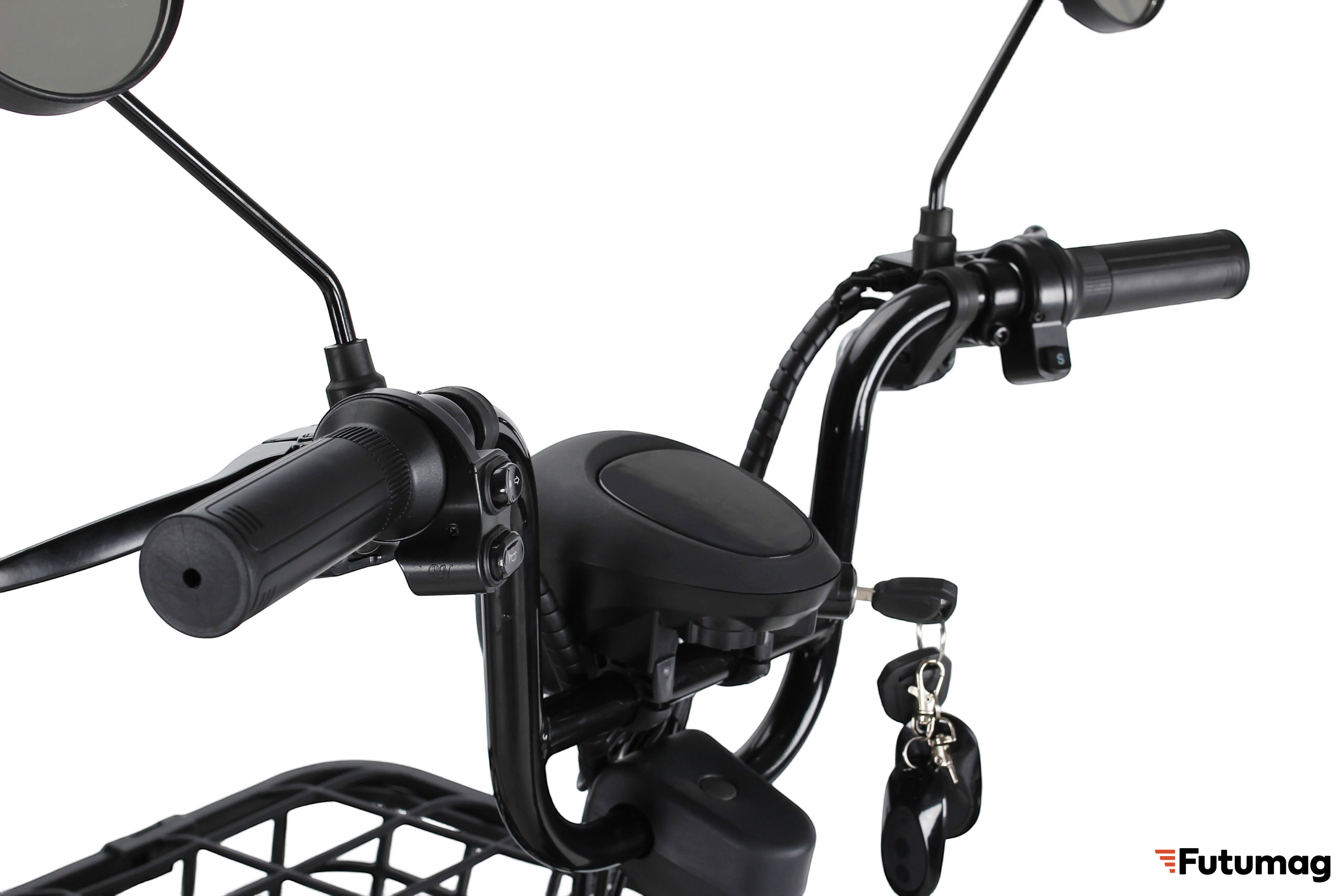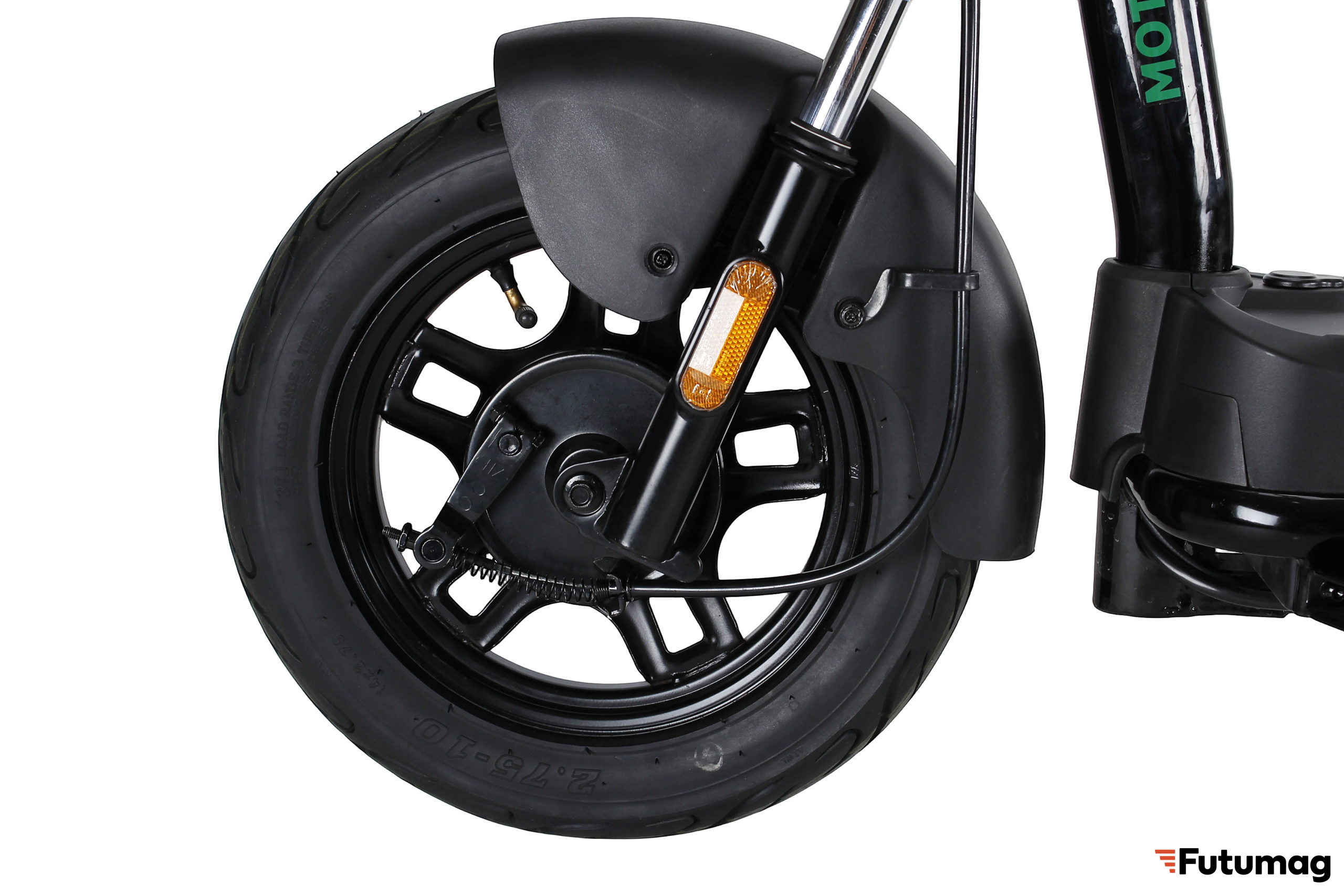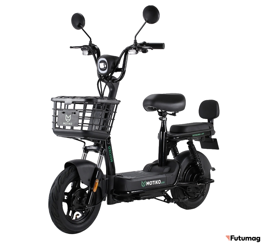 Электровелосипед MOTIKO MD1 выполнен на 14-дюймовых колес и раме в стильной черно-зеленой цветовой гамме, сочетающей современный дизайн с практичностью для городских условий. Компактные размеры рамы обеспечивают отличную маневренность в плотном городском потоке и удобство хранения в ограниченном пространстве. Максимальная нагрузка составляет 120 кг, что позволяет комфортно использовать велосипед большинству водителей.