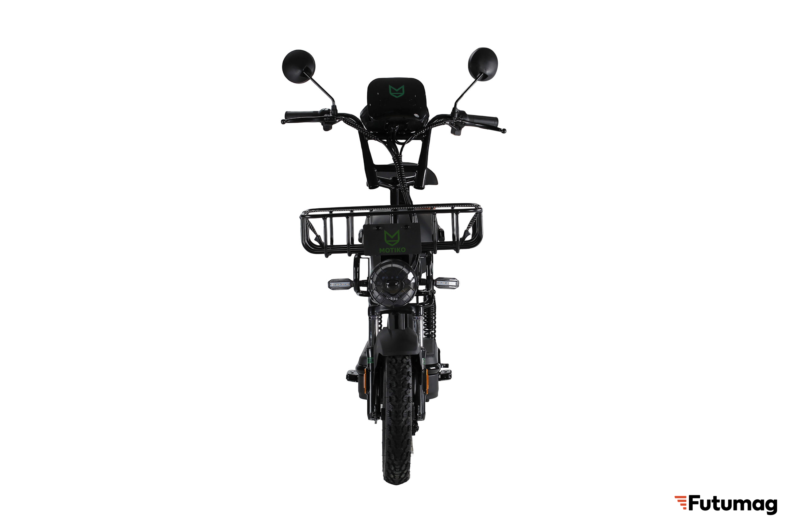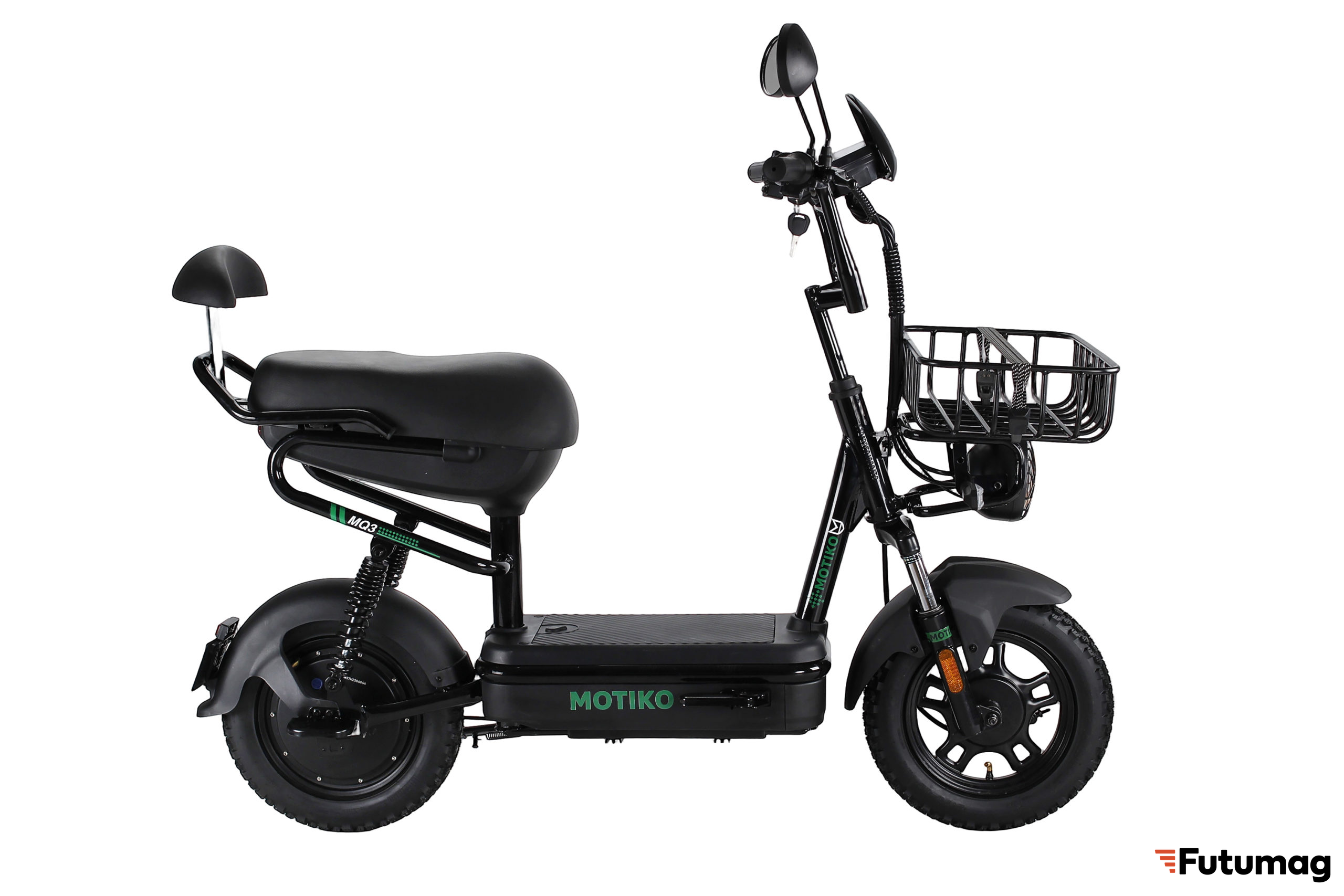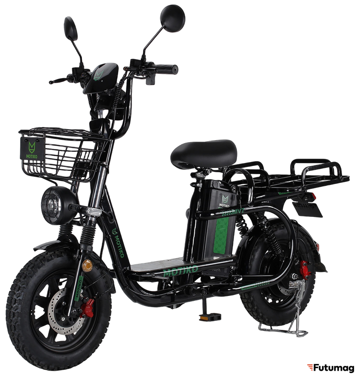 Электровелосипед MOTIKO MQ3 выполнен на 14-дюймовых колесах в стильной черно-зеленой цветовой гамме. Компактный размер рамы обеспечивает отличную маневренность в городских условиях и удобство хранения в ограниченном пространстве. Максимальная грузоподъемность составляет 120 кг, что позволяет использовать велосипед водителям с различной комплекцией.