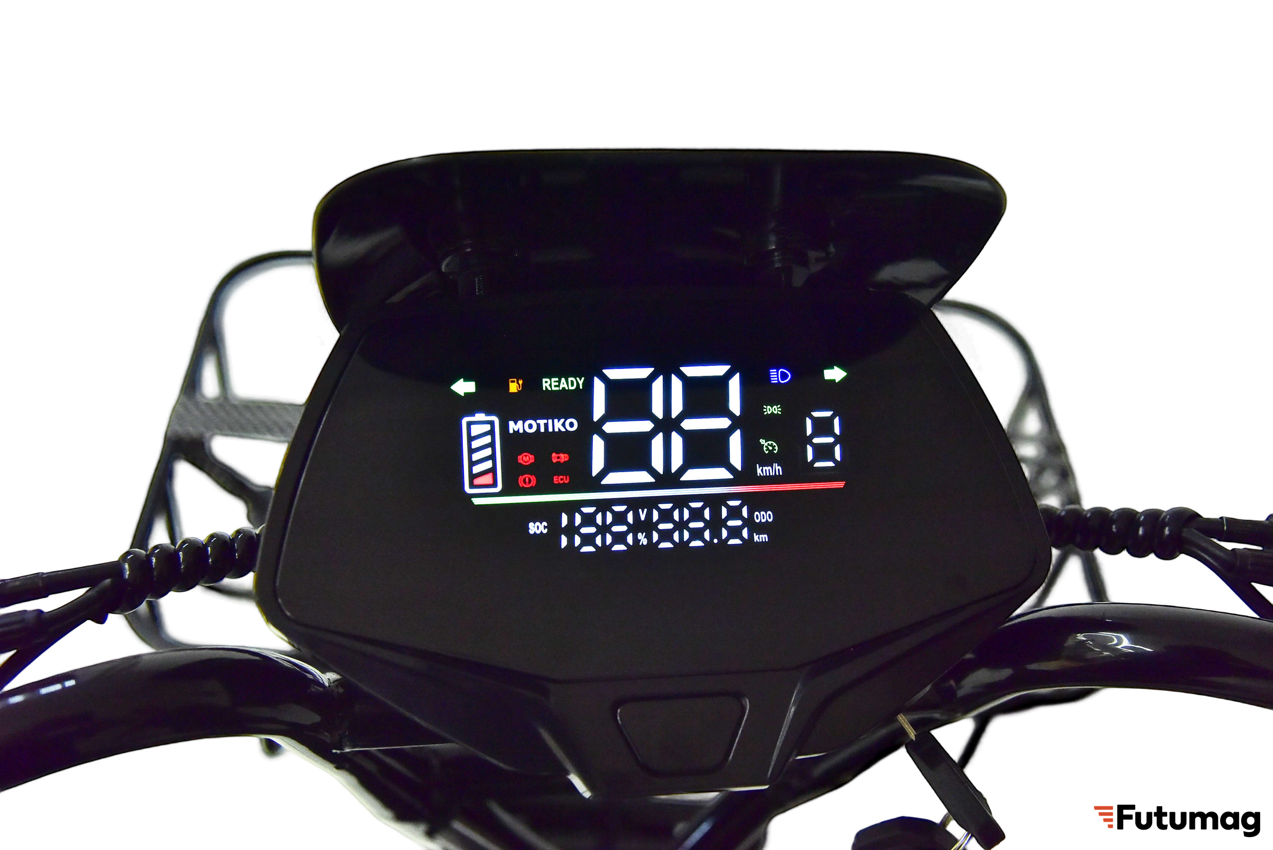 БрендMOTIKOМощность двигателя500 WЕмкость аккумулятора20000 мАчМаксимальная скорость50 км/чМаксимальная нагрузка120 кгПробег на одном заряде40 кмВремя зарядки10 чДиаметр колес14"Тормозная системаДисковаяВес46.5 кгНапряжение48 VФары/ходовые огниестьБортовой компьютерестьКорзинаЕстьКонтроллер28 A -