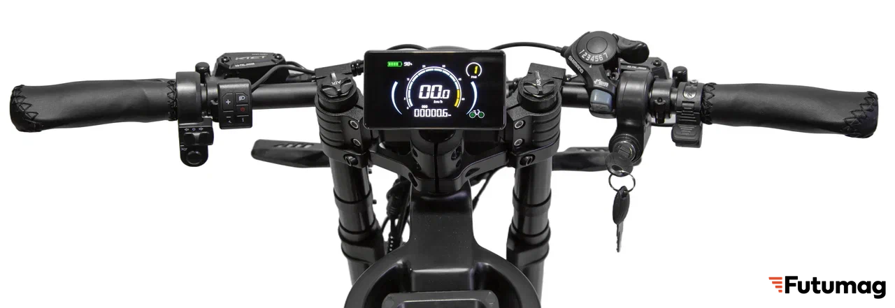 Электровелосипед оборудован LED-дисплеем, на котором отображается информация о скорости, заряде батареи и режиме работы. Это позволяет пользователям быть в курсе состояния своего устройства и планировать поездки.