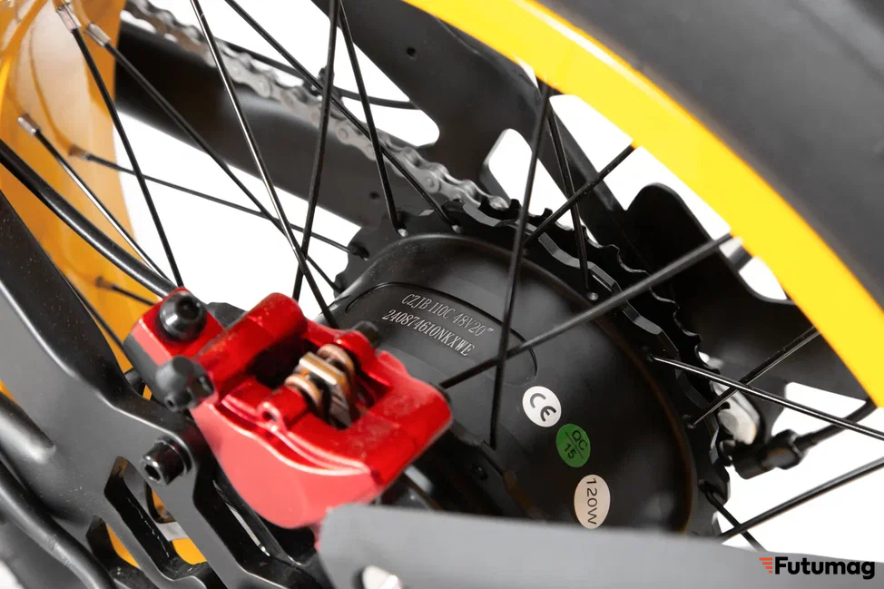 Электровелосипед оборудован дисковыми тормозами на переднем и заднем колесах, что обеспечивает надежное и быстрое торможение. Это особенно важно в условиях города, где могут возникать неожиданные ситуации.