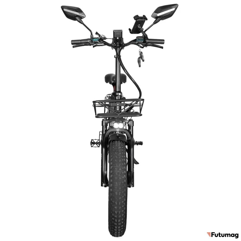 Электровелосипед имеет колеса диаметром 20 дюймов, что обеспечивает отличную маневренность и комфорт во время езды. Алюминиевый каркас делает его легким и прочным, что добавляет долговечности при использовании.