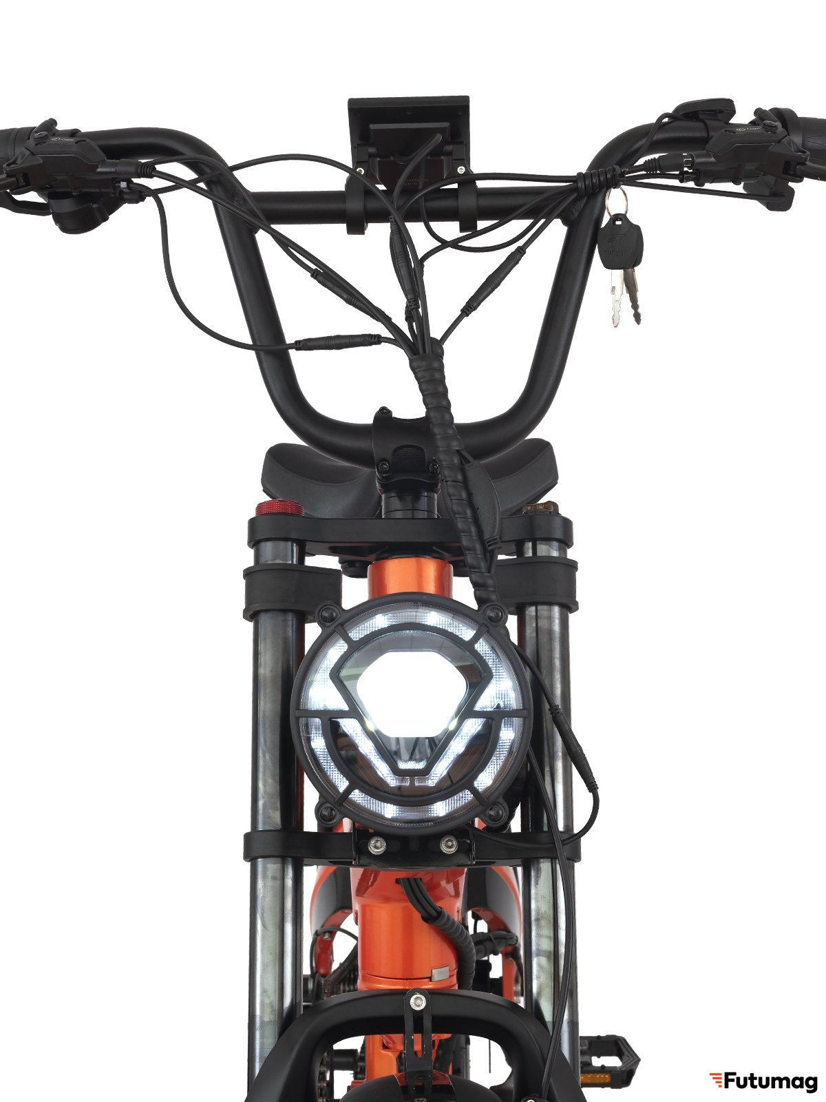 Электровелосипед оснащен гидравлической тормозной системой Logan с одним поршнем, которая обеспечивает надежное и быстрое торможение. Это особенно важно при высоких скоростях, когда требуется мгновенная реакция. Гидравлическая передняя вилка добавляет дополнительный комфорт, сглаживая неровности дороги и обеспечивая плавность хода.