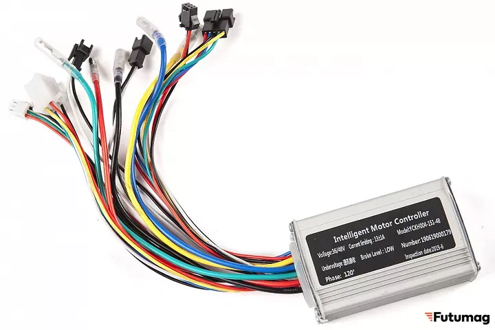Современный контроллер, входящий в состав комплекта управляет слаженной работой всех компонентов. Контроллер размещается в пластиковом корпусе, который легко установить на раме или подседельной трубе.