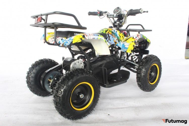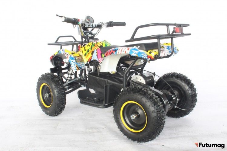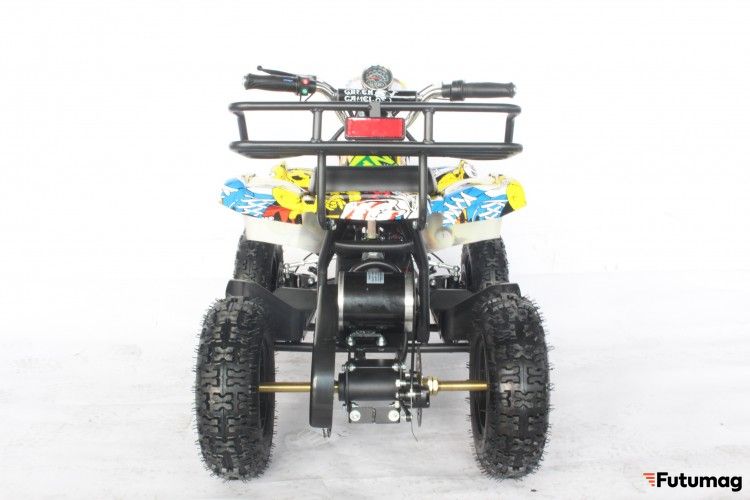 Представляем детский квадроцикл GreenCamel Гоби K21 для детей от 3 до 7 лет. 800Вт-ным коллекторным двигателем на 12Ah штатной гелевой SLA батарее, развивающий до 20 км/ч при максимальной загрузке до 60 кг. Устойчивость при манёврах обеспечена более широкой расстановкой передних колёс и низким центром тяжести, мягкость хода подвески на различных покрытиях осуществлена парными передними и задними пружинными амортизаторами, а необходимые остановки производятся совместно или раздельно передним и задним дисковыми механическими тормозами. На руле расположены органы управления: рычаги тормоза, ручка газа, спидометр с индикатором батареи, кнопка передних фар и клаксон. Благодаря геометрии, низкому ЦТ и большим колёсам 6 радиуса, квадроцикл способен преодолевать угол подъёма в 15 градусов. Перед началом движения необходимо повернуть ключ зажигания на руле и рычаг переключения движения (вкл/выкл/реверс) на фальшбаке. Родительский контроль осуществляется поворотом ключа в трех режимах L-N-H (Низкий - Нормальный - Высокий уровень). Прочный корпус и качественные материалы обеспечат долгий срок службы, а влагозащита электрических компонентов позволит кататься на квадроцикле при любой погоде.