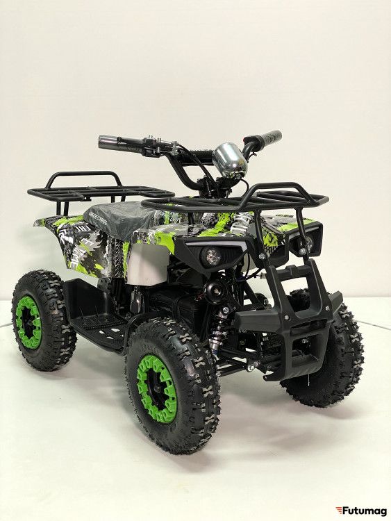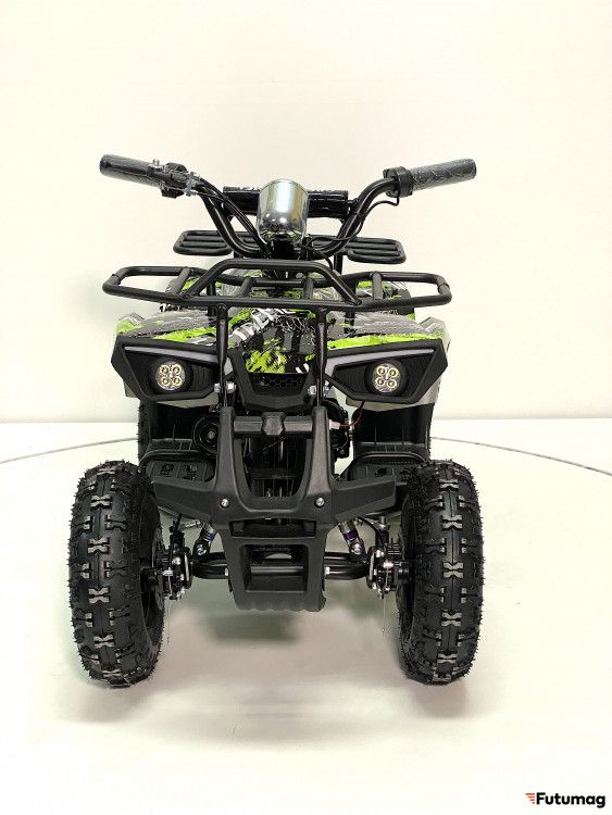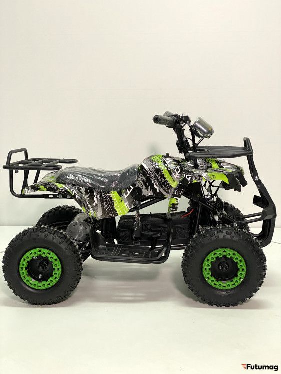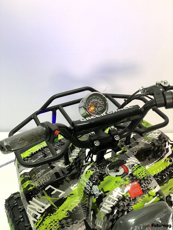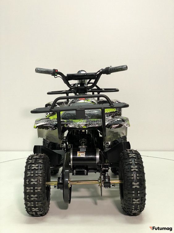 Уже зарекомендовавший себя бесколлекторный мотор мощностью 800Вт с термобиметаллическим предохранителем от перегрузки, оснащён гелевой батареей 30Ah и цепным приводом. На полном зарядке квадрик способен разогнаться до 20 км/ч и проехать до 35 км. В традиционной конструкции подвески с четырьмя пружинными амортизаторами, заменен передний тормоз на гидравлический ножной, а задний остался дисковым механическим на рулевом рычаге. По-прежнему присутствует трехскоростной ключ-переключатель родительского контроля L-N-H (Низкий -Нормальный - Высокий уровень). Запуск двигателя осуществляется поворотом ключа зажигания на руле и рычагом переключения движения (вкл/выкл/реверс) на фальшбаке. Значительным улучшением в комплектации является наличие двух комплектов пультов-брелоков сигнализации, с помощью которым можно включать и отключать двигатель, запускать дистанционный поиск квадроцикла и ставить на сигнализацию.