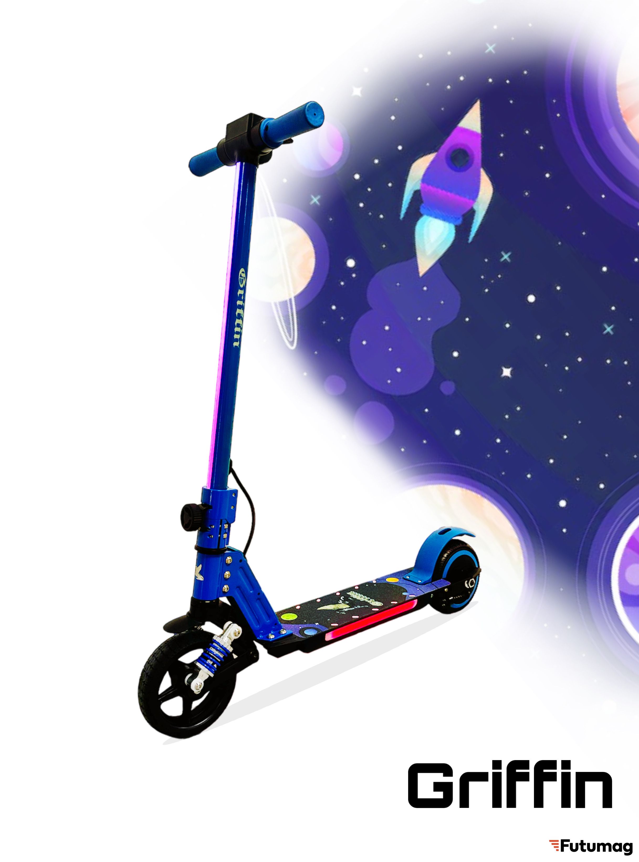 GRIFFIN KIDS - яркий, стильный и функциональный детский электросамокат. Колеса 6.5 дюймов, яркий цветной дисплей, передний аммортизатор и подсветка делают электросамокат GRIFFIN KIDS - самым желанным подарком для ребенка!