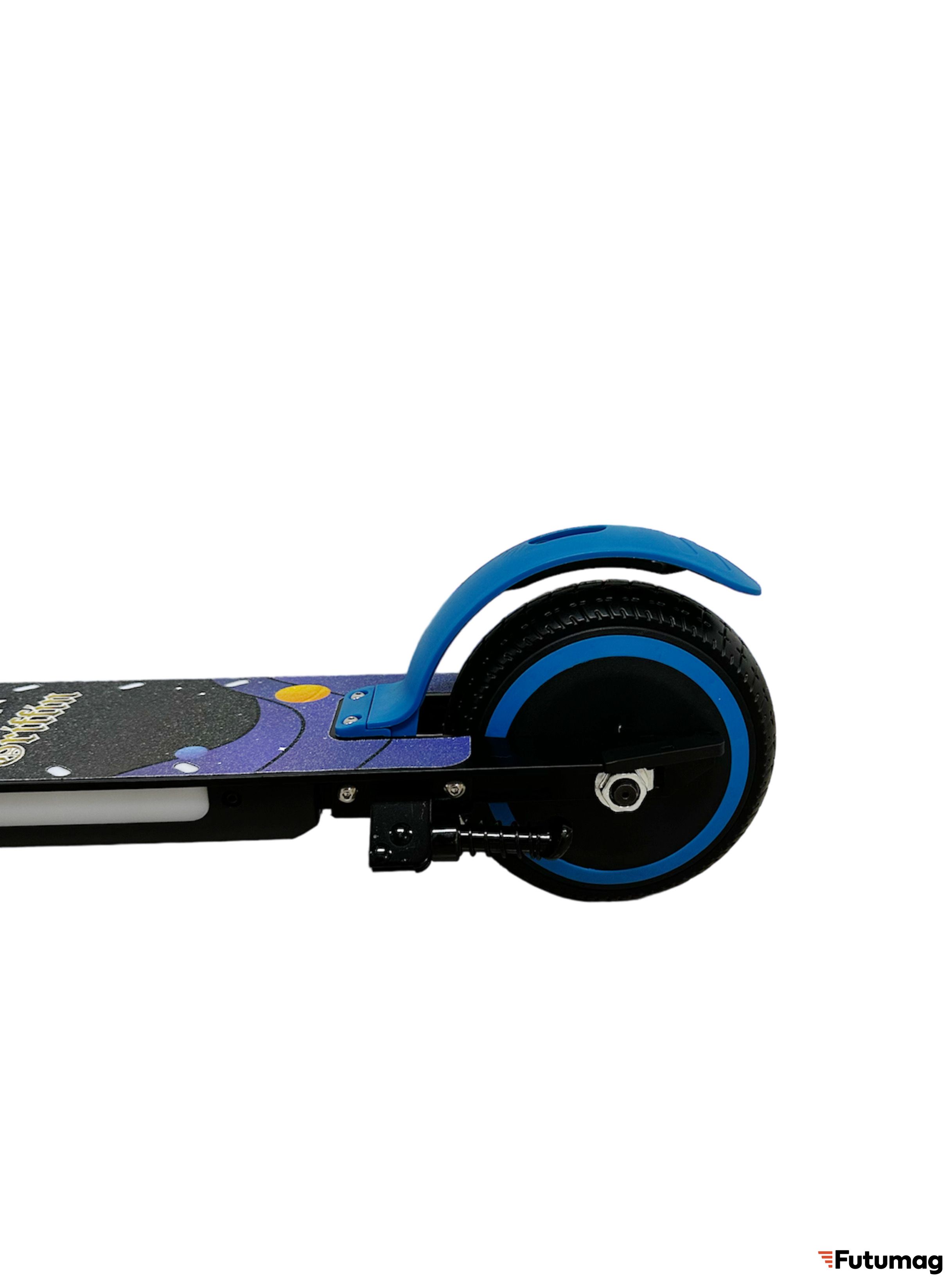 Самокат оснащен надувными 6.5 дюмйовыми колесами и передним аммортизатором