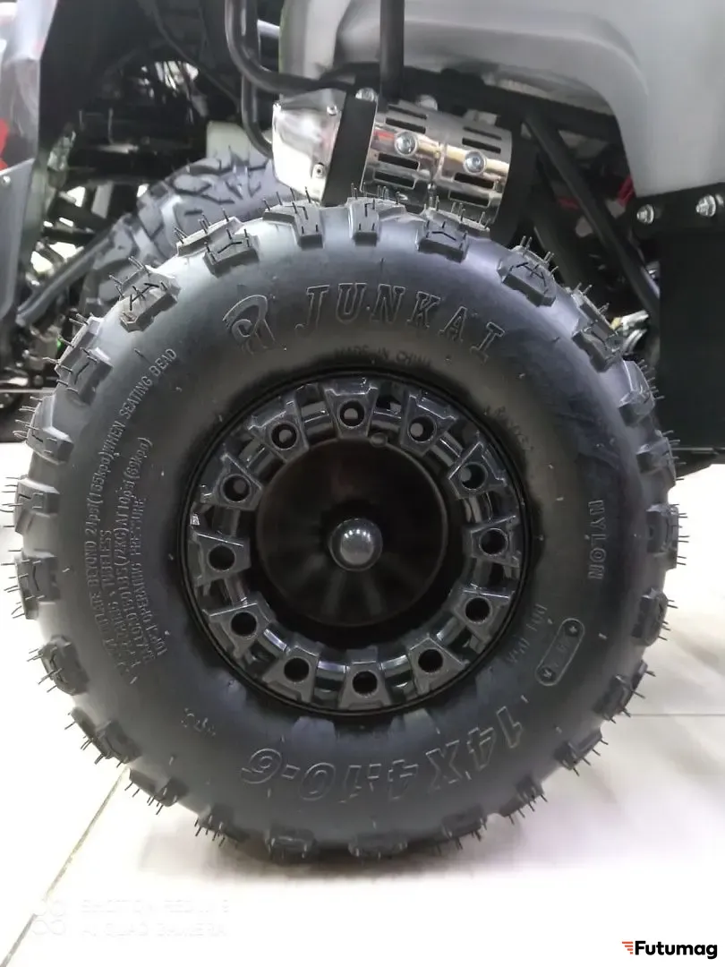 - Колеса: Пневматические, с глубоким протектором, идеально подходят для бездорожья.