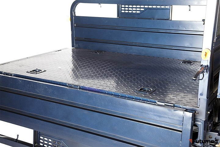 Размер грузового отсека составляет 1500×1000×450 мм, что позволяет удобно загружать и выгружать различные товары. Силовые петли для фиксации груза и новый дизайн обеспечивают безопасность и надежность во время транспортировки. Пониженная передача и передняя подвеска с гидравлическими амортизаторами обеспечивают отличную проходимость и комфорт во время поездки, а задняя подвеска, состоящая из рессор и пружин, улучшает устойчивость на дороге.