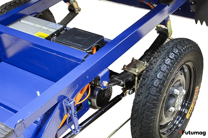 Привод задний, что обеспечивает отличную проходимость и устойчивость на дороге. Барабанные тормоза как спереди, так и сзади гарантируют надежное торможение, что особенно важно при перевозке тяжелых грузов. Эта модель также оснащена гидравлической вилкой на передней подвеске и рессорной задней подвеской, что обеспечивает комфортную поездку даже на неровных покрытиях.