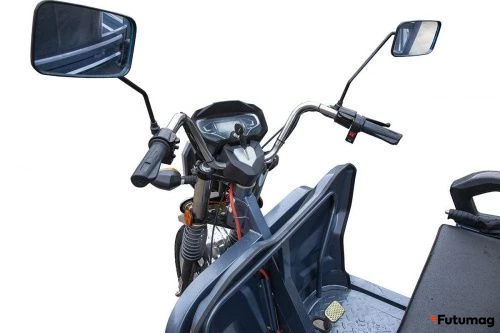 Управление электротрициклом осуществляется с помощью ручки газа, что делает его использование простым и интуитивно понятным. Увеличенное пространство для ног водителя на 15 см обеспечивает комфорт во время длительных поездок. Освещение, включающее фары, поворотники и габаритные огни, гарантирует безопасность передвижения в темное время суток, что особенно важно для городских условий.