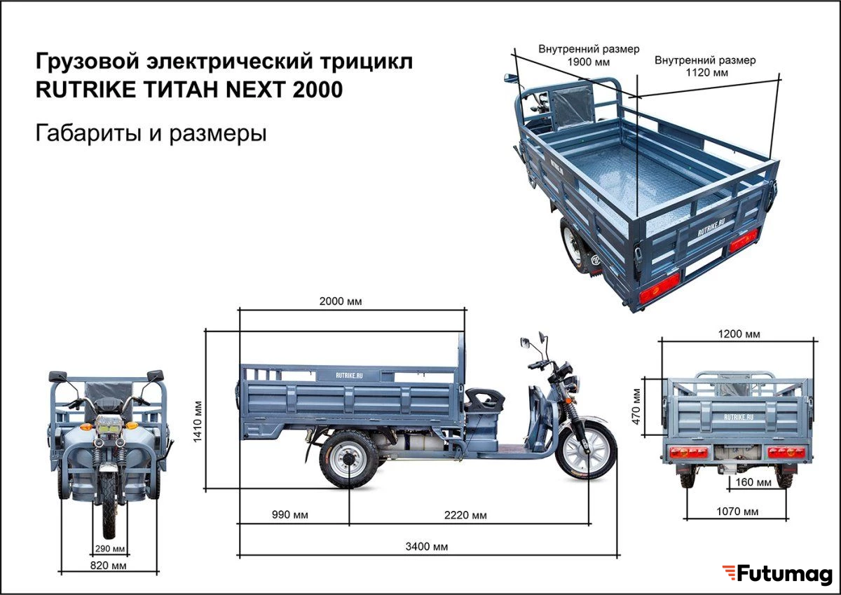 Грузовой электротрицикл Rutrike Титан NEXT 2000 — это надежное и мощное транспортное средство, созданное для эффективной перевозки грузов. С двигателем мощностью 1500 Вт и задним редукторным приводом, он обеспечивает отличную производительность и маневренность. Эта модель идеально подходит для использования как в городских условиях, так и на сложных маршрутах, что делает ее универсальным решением для бизнеса.