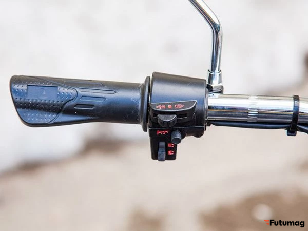 Светодиодная информационная панель предоставляет водителю важную информацию о состоянии аккумулятора и текущей скорости. Регулировка угла наклона руля позволяет настроить удобное положение для управления, а скорость регулируется с помощью ручки газа.
