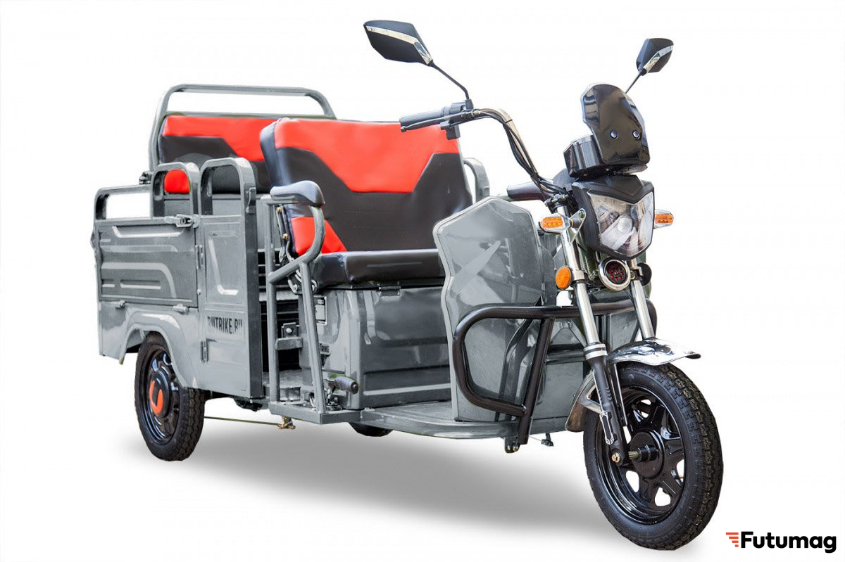 Освещение спереди и сзади гарантирует хорошую видимость в темное время суток, что делает его безопасным для эксплуатации. Кабина и крыша отсутствуют, что позволяет использовать трцикл для различных типов грузов и пассажиров.