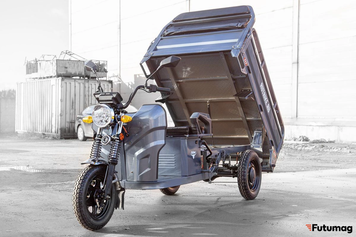 Габариты трицикла составляют 2880 х 1130 х 1325 мм, а размеры грузового отсека — 1500 х 1050 х 330 мм. Это позволяет легко перевозить крупногабаритные грузы, что значительно упрощает процесс загрузки и разгрузки.