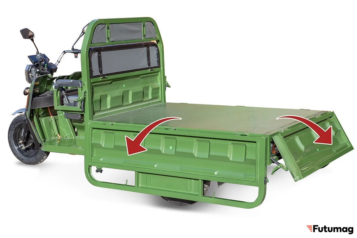 С мощностью 1000 Вт и максимальным напряжением 60 В, этот электротрицикл способен развивать скорость до 25 км/ч, что делает его отличным выбором для работы в городских условиях. Максимальная нагрузка в 600 кг позволяет перевозить значительные объемы, что особенно полезно для бизнеса.