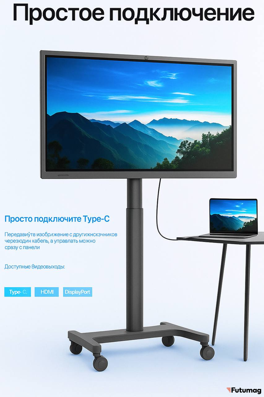 Веб-камера с разрешением 48 мегапикселей интегрирована непосредственно в корпус панели и обеспечивает высокое качество изображения при проведении видеоконференций. Широкоугольный объектив охватывает всю аудиторию, делая удаленное общение максимально комфортным. Камера может использоваться как для видеочатов, так и для съемки учебных материалов.