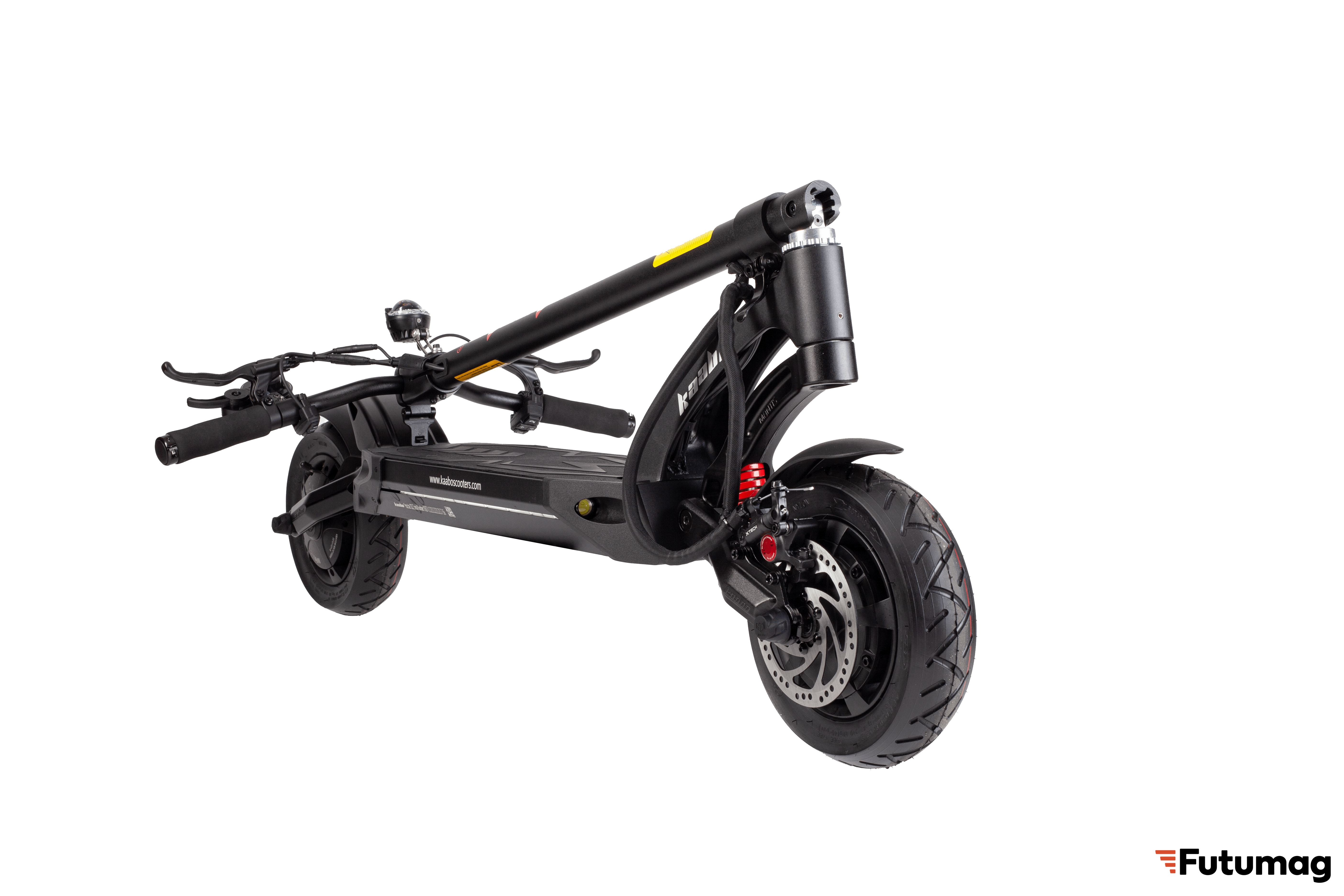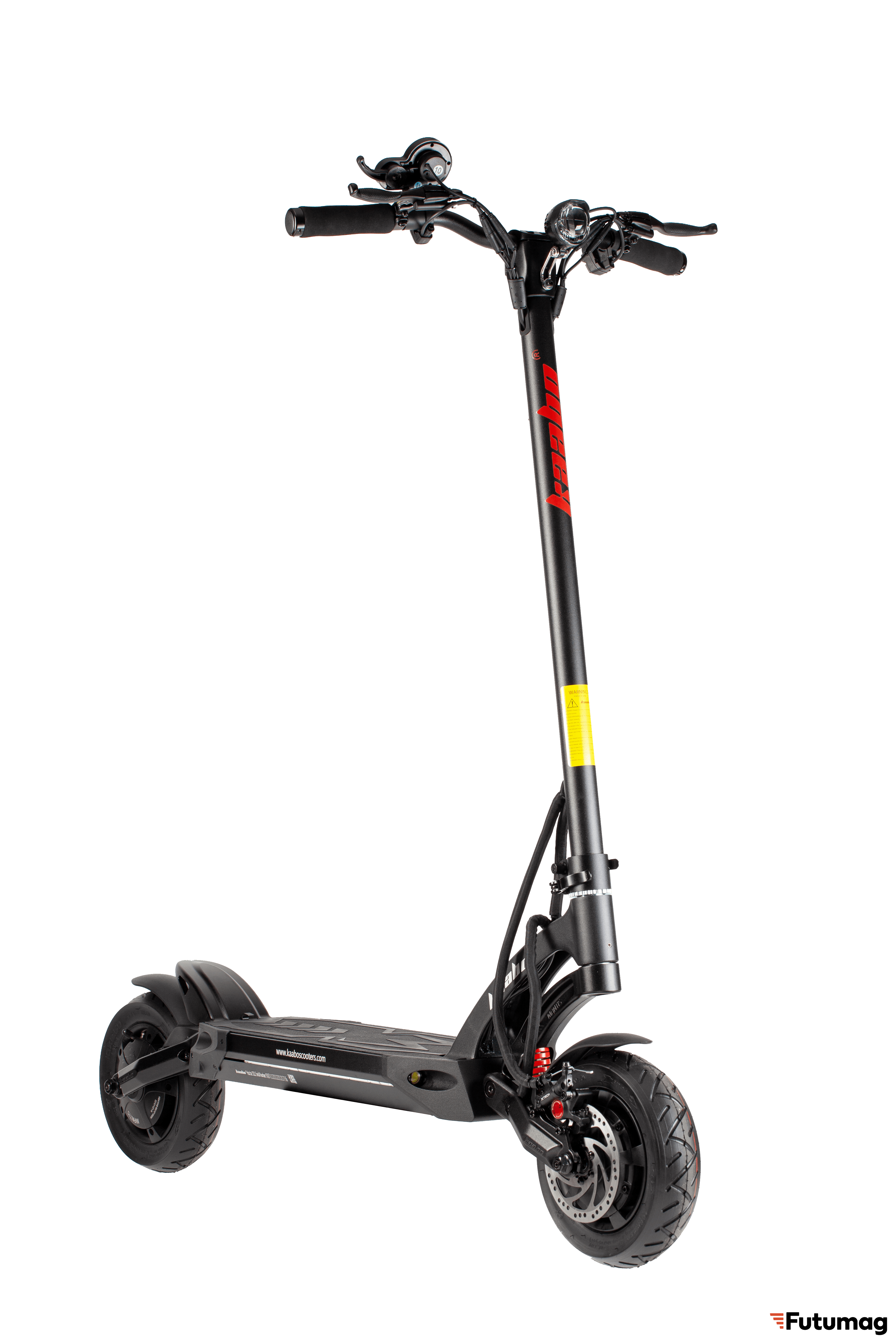 - Система освещения включает LED фару, свет на платформе, поворотные огни и фару с гудком. Управление осуществляется через контроллер Kaabo Sina Wave. Дисплей Kaabo предоставляет всю необходимую информацию о поездке.