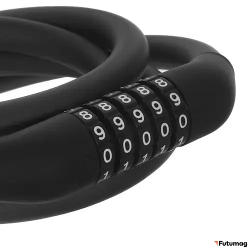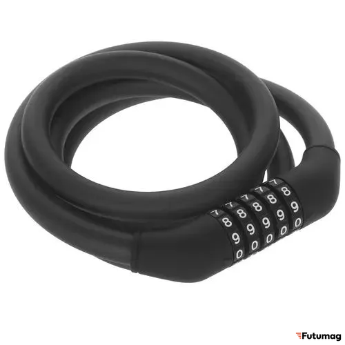 Прочный кабель: Изготовлен из высококачественной стали, что делает его устойчивым к резанию и другим механическим повреждениям. Это означает, что даже в случае попытки кражи, замок будет сложно сломать.
