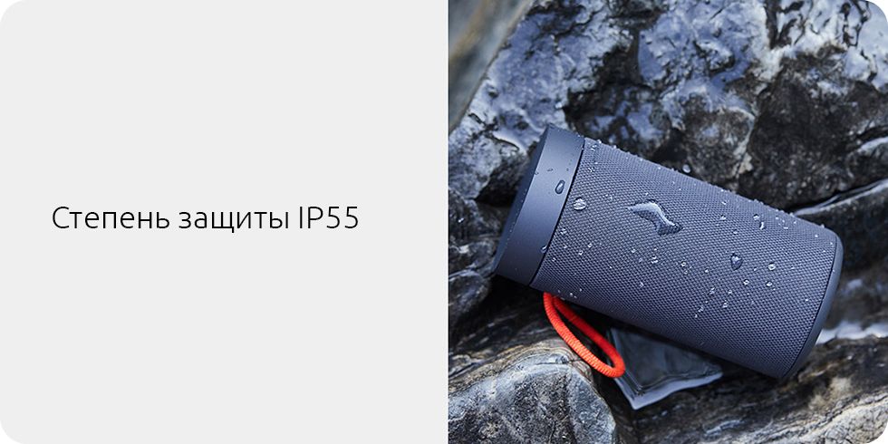 Xiaomi Mi Outdoor Bluetooth Speaker имеет 5-ую степень защиты от влаги и 5-ую степень защиты от пыли, благодаря чему она не боится ни внезапного дождя, ни долгого хранения в глубине шкафа или рюкзака. Колонка стойко выдержит любые походы и будет долго радовать качественным звуком и превосходным внешним видом.