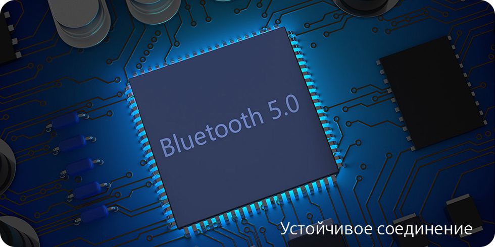 Новый чип Bluetooth 5.0 отличается ещё более высокой скоростью передачи данных и устойчивым сигналом. Он совместим со многими устройствами, имеет низкое энергопотребление и всегда готов помочь в прослушивании музыки.