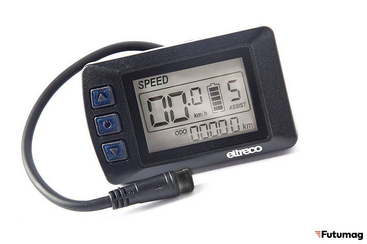 В состав комплекта входит управляющий велокомпьютер OMT-M3 с LCD-дисплеем, на котором отображаются все необходимые показатели. Ручка акселератора устанавливается на правой грипсе и позволяет передвигаться на велосипеде в режиме "скутера", не прибегая к вращению педалей.