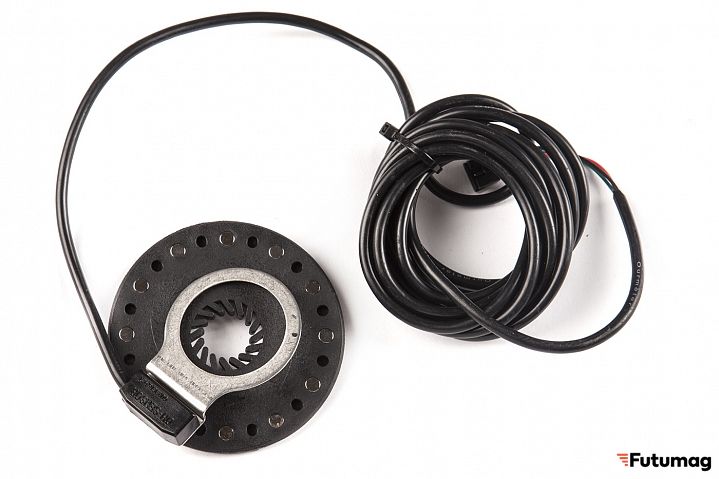 На каретку устанавливается датчик вращения педалей — он необходим для активации режима помощника, который активирует электромотор при вращении педалей. Усилия помощи электромотора при педалировании регулируются путём выставления уровня PAS (ассистента) на управляющем велокомпьютере.